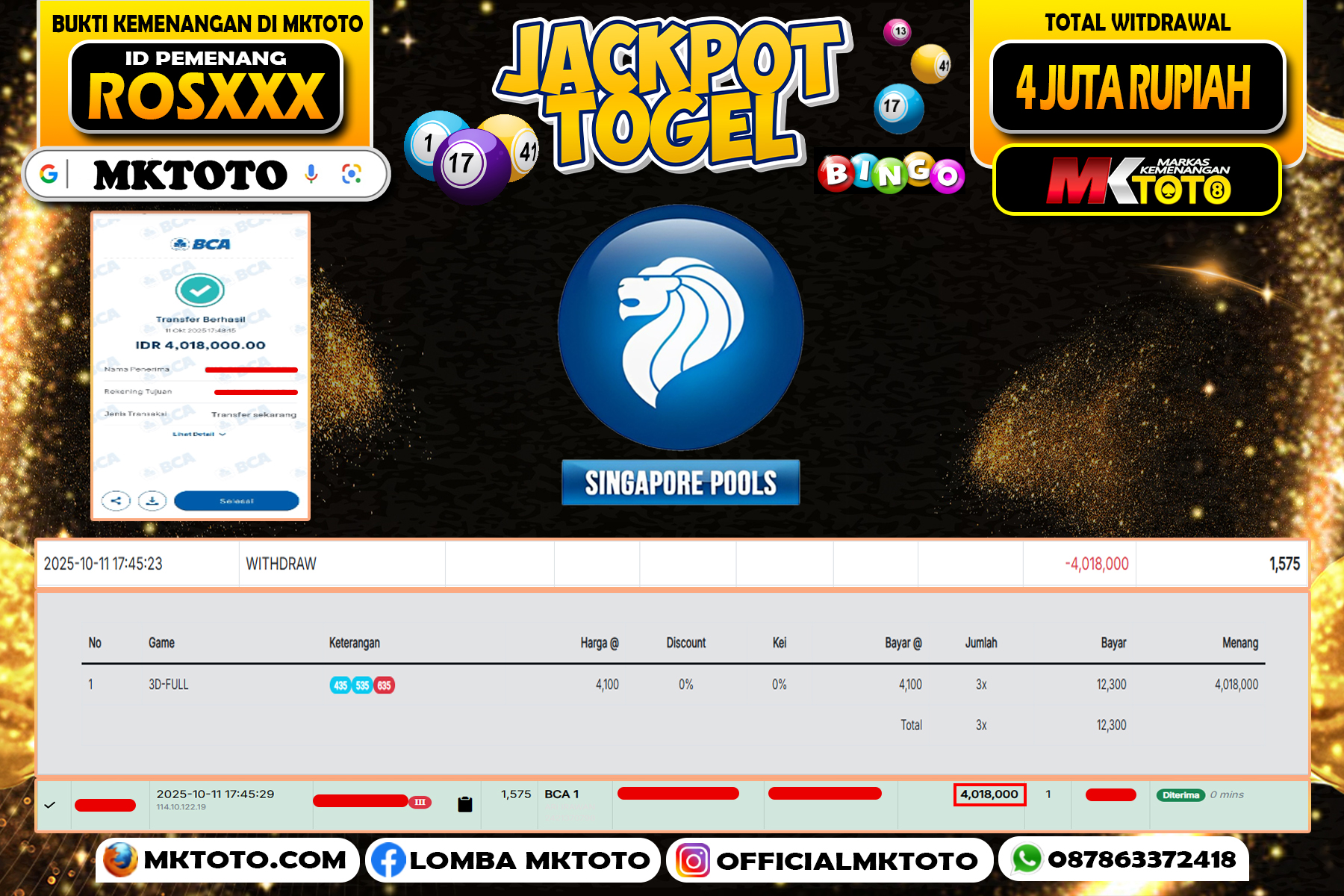 JACKPOT SINGAPORE POOLS 11 OKTOBER 2025