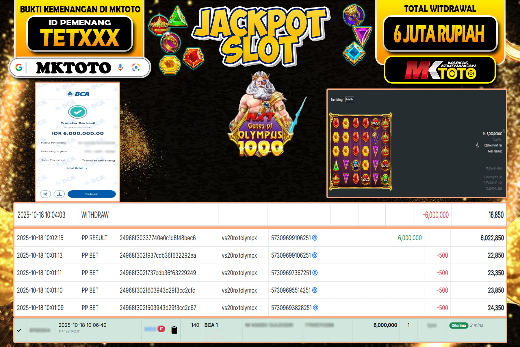 JACKPOT GATE OF OLYMPUS NXT DENGAN TOTAL HADIAH 6 JT RUPIAH !!