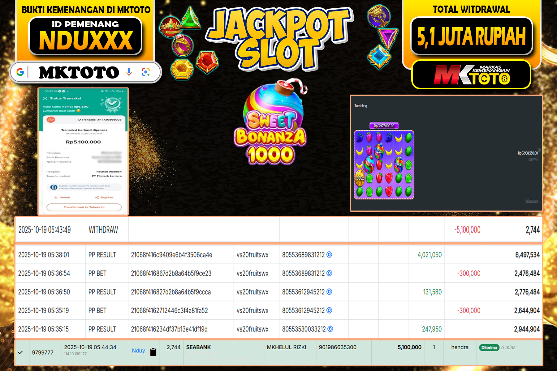 JACKPOT SWEET BONANZA 1000 19 OKTOBER 2025
