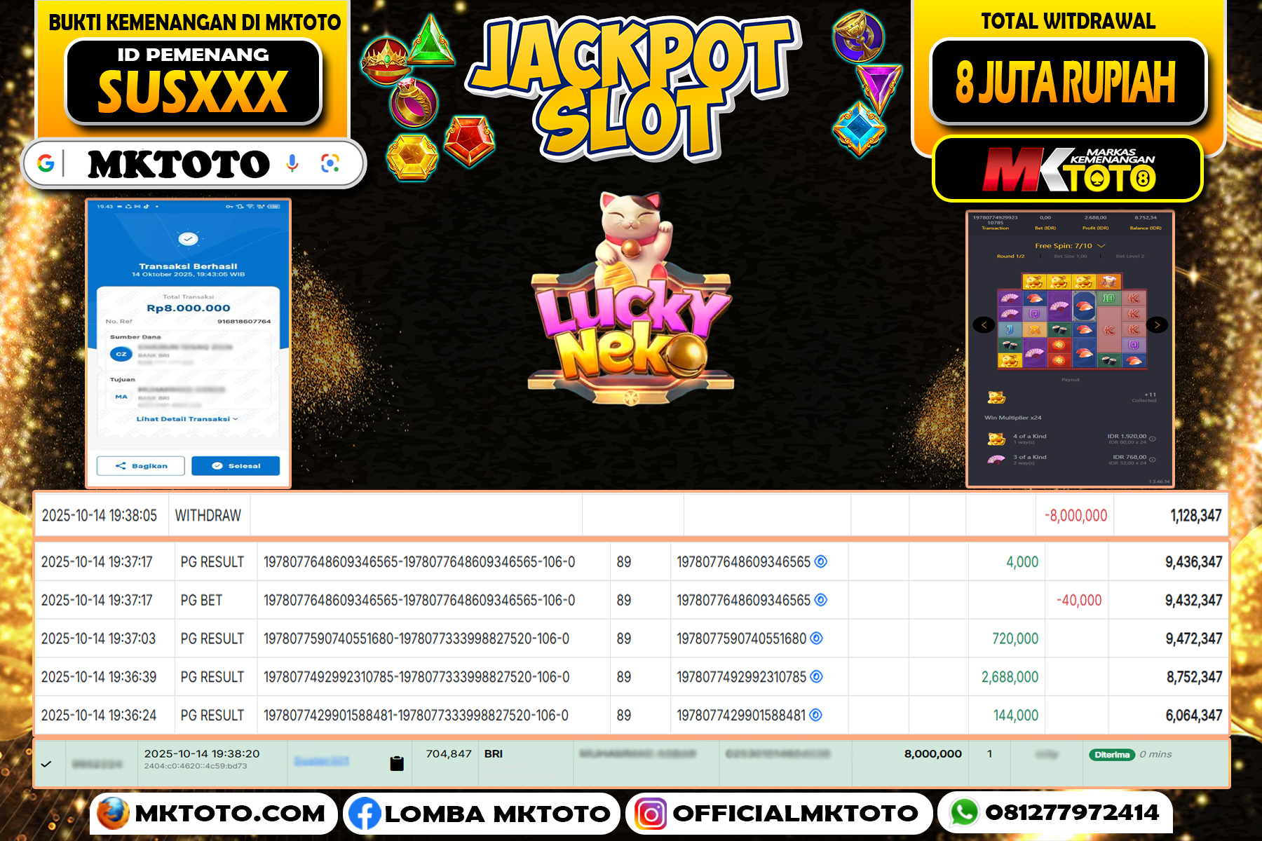 JACKPOT LUCKY NEKO 14 OKTOBER 2025