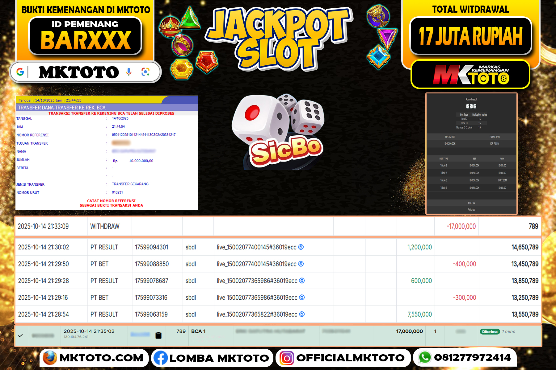 JACKPOT SICBO DENGAN TOTAL HADIAH 17 JT RUPIAH !!