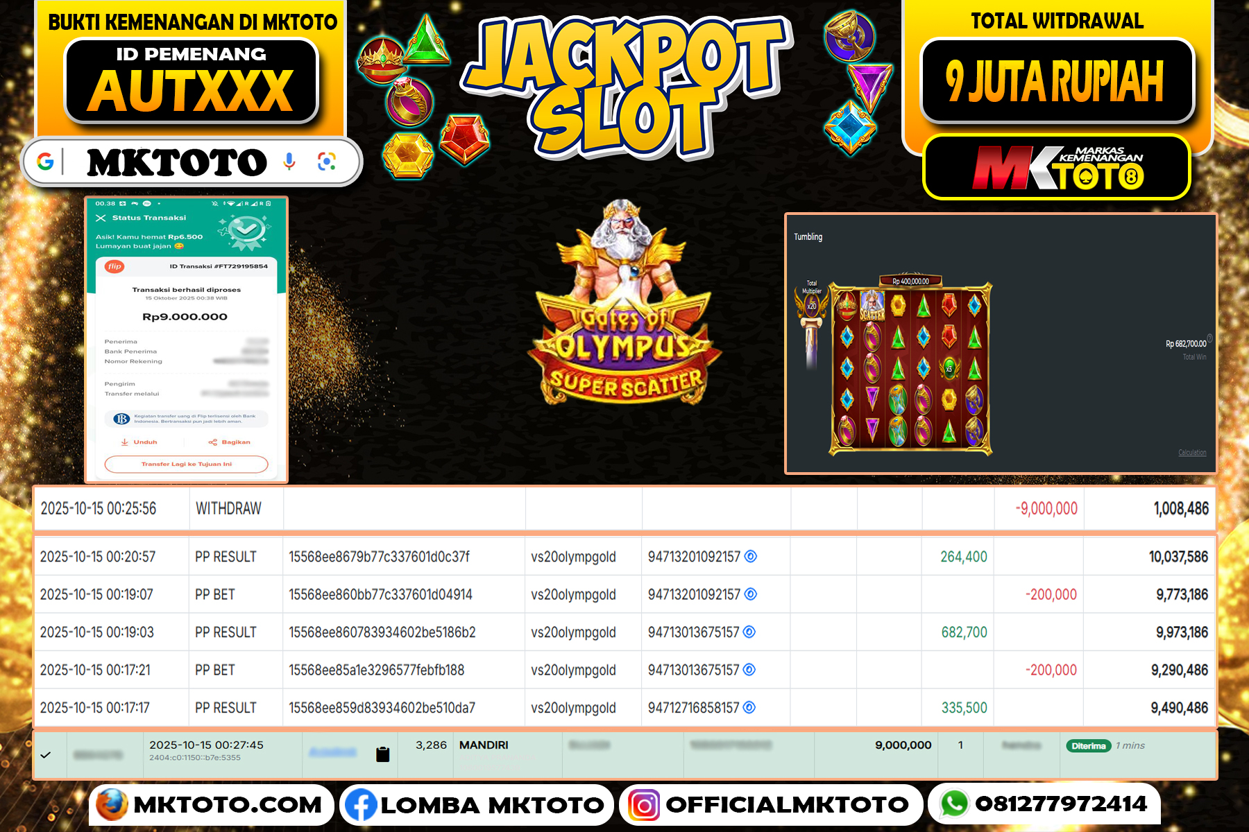 JACKPOT GATE OF OLYMPUS SUPER SCATTER DENGAN TOTAL HADIAH 9 JT RUPIAH !!